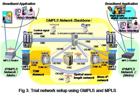 The GMPLS equipment of NEC and Hitachi in this experiment include the